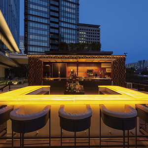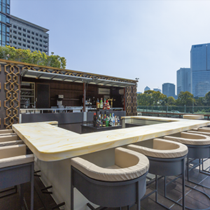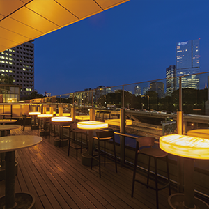 Benjamin Terrace Lounge is the most expansive location within Tokyo Garden Terrace. It's an open and comfortable spacious area where guests can enjoy lunch, dinner, and a relaxing drink at the bar, surrounded by nature in all four seasons.