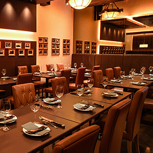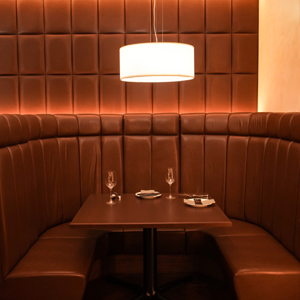 ゆったりと食事を楽しめる広いテーブル席をご用意しております。高級感がありながら控えめの照明で落ち着いた雰囲気漂う店内で優雅なひと時をお過ごしください。